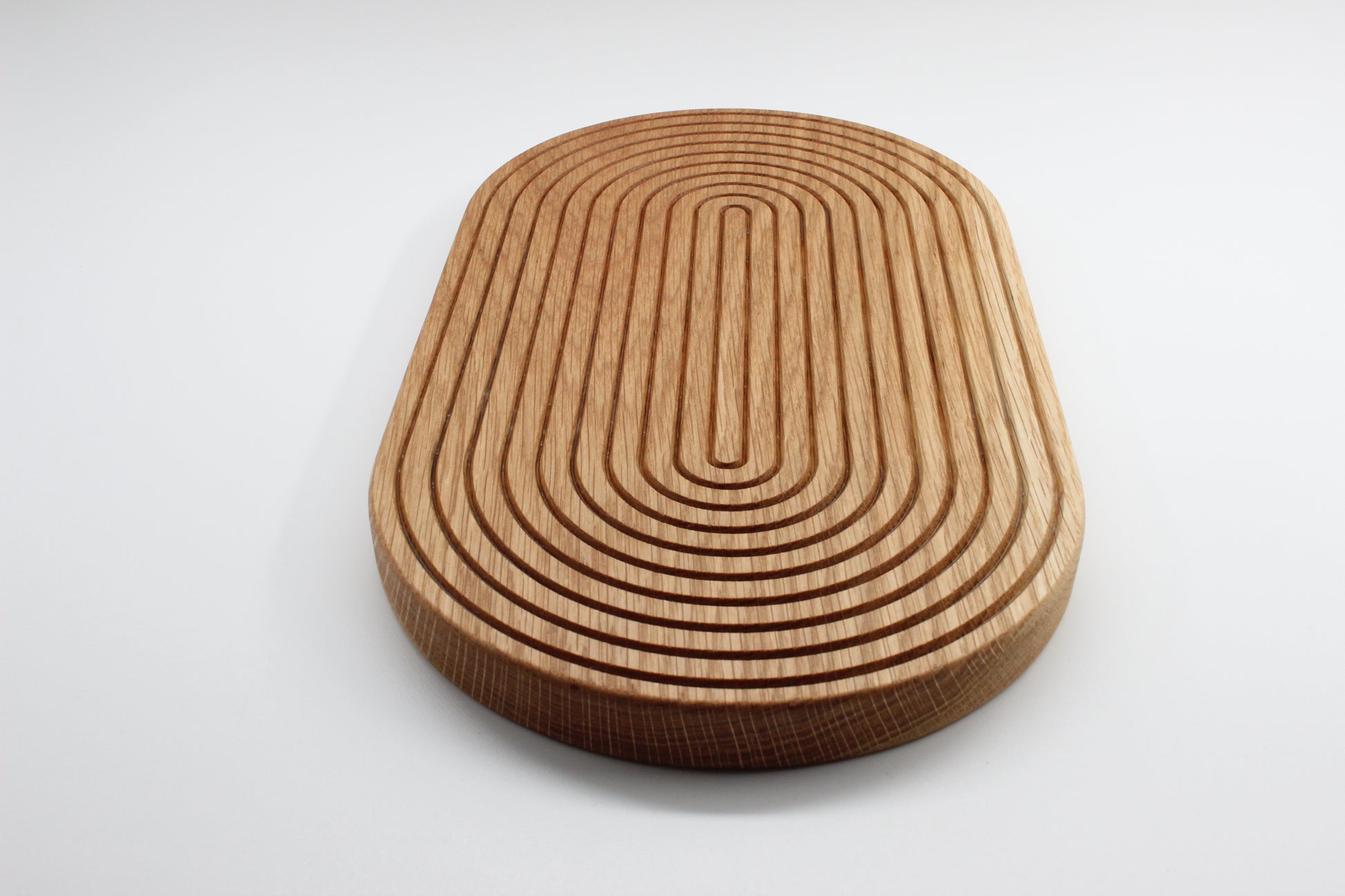 A beautifully crafted solid oak trivet, designed to protect your worktops from hot pots and pans. Precision-cut grooves help disperse heat while adding a subtle design detail. Durable, practical, and finished to enhance the natural grain of the wood.